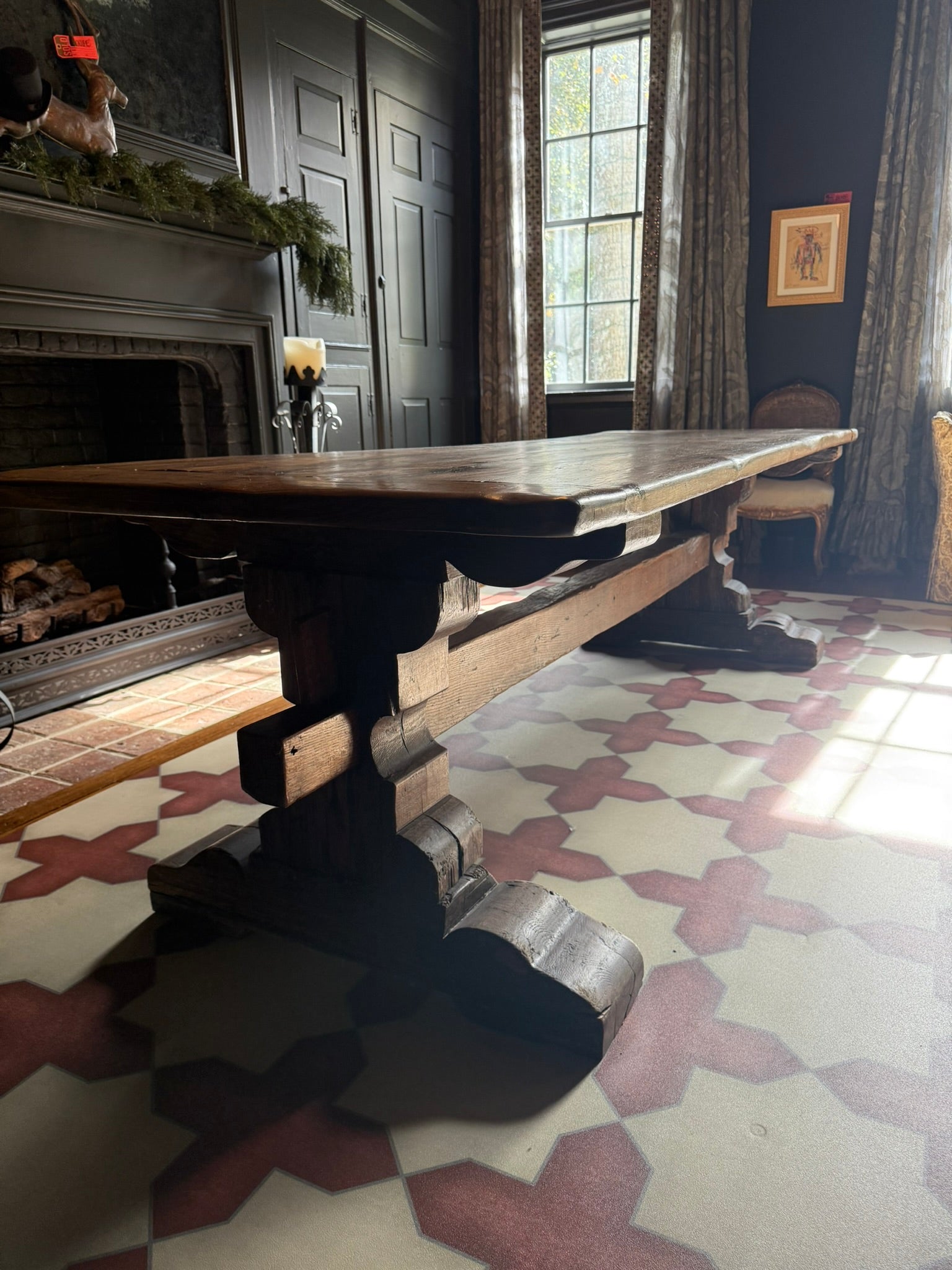 Antique Italian Trestle Dining Table – Hand-Carved Solid Hardwood