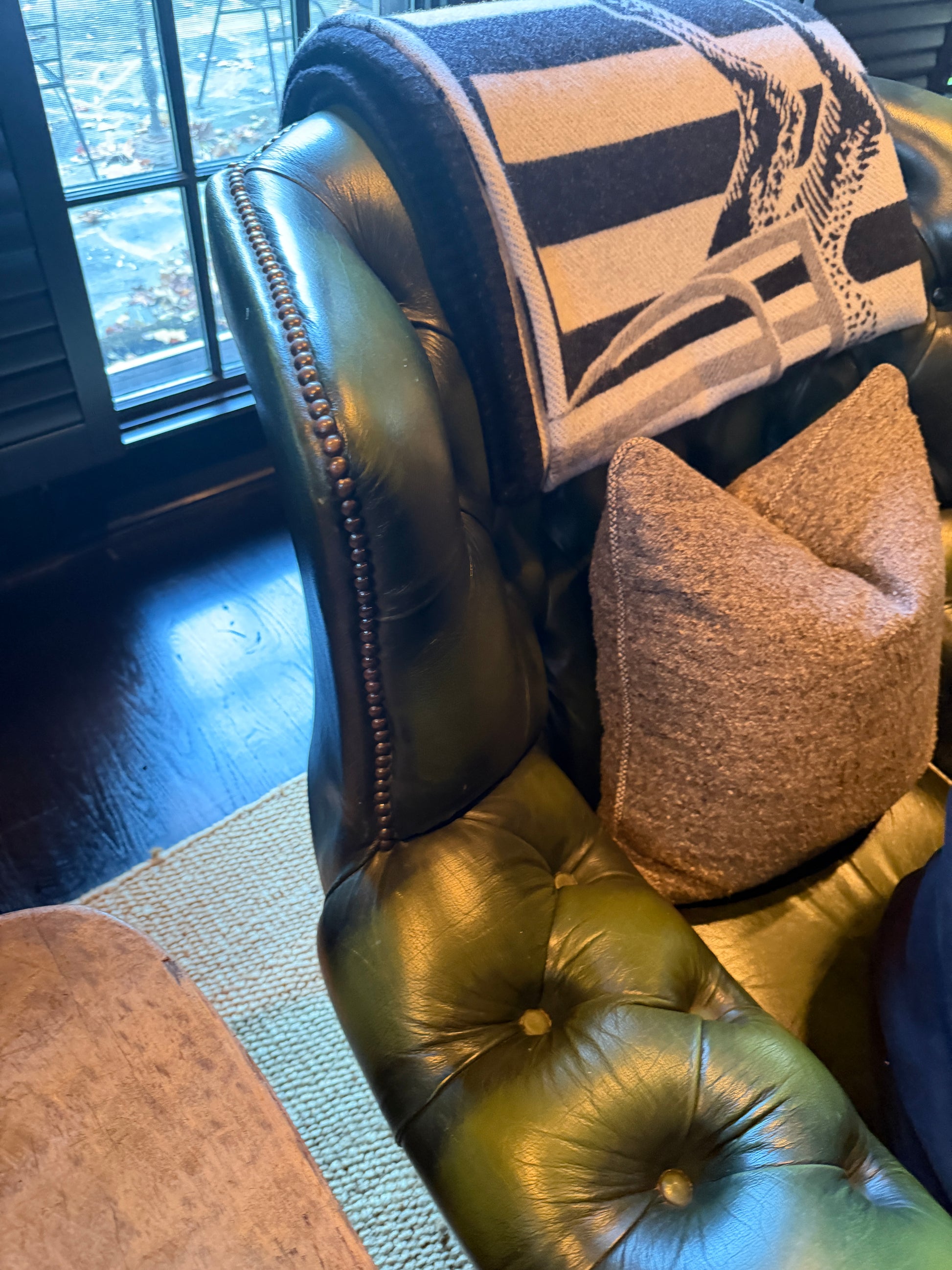 Comfortable, substantial, and elegantly aged, they make a handsome addition to a study, library, or sitting room. The green tone pairs beautifully with dark woods, tartans, and vintage rugs.