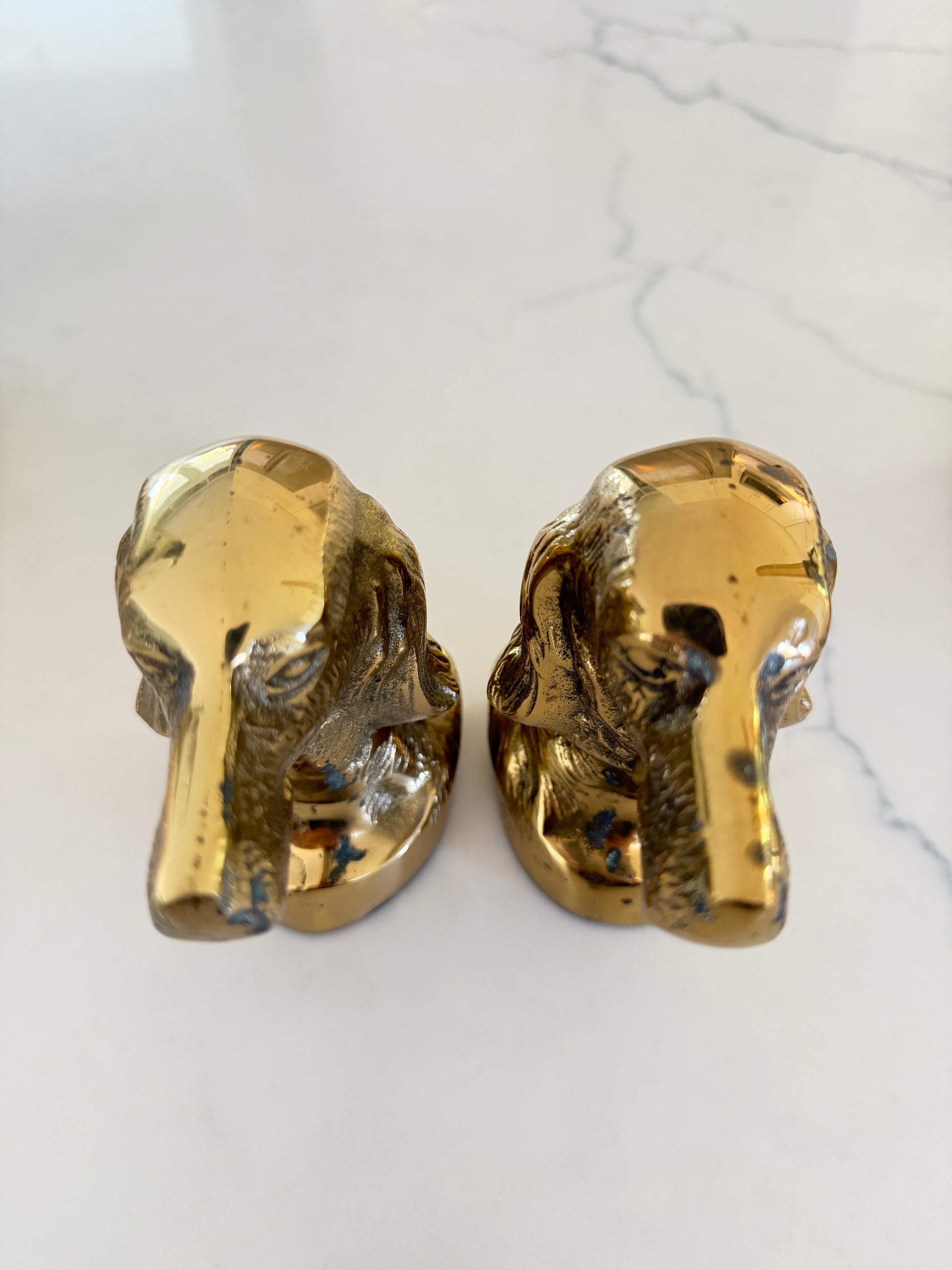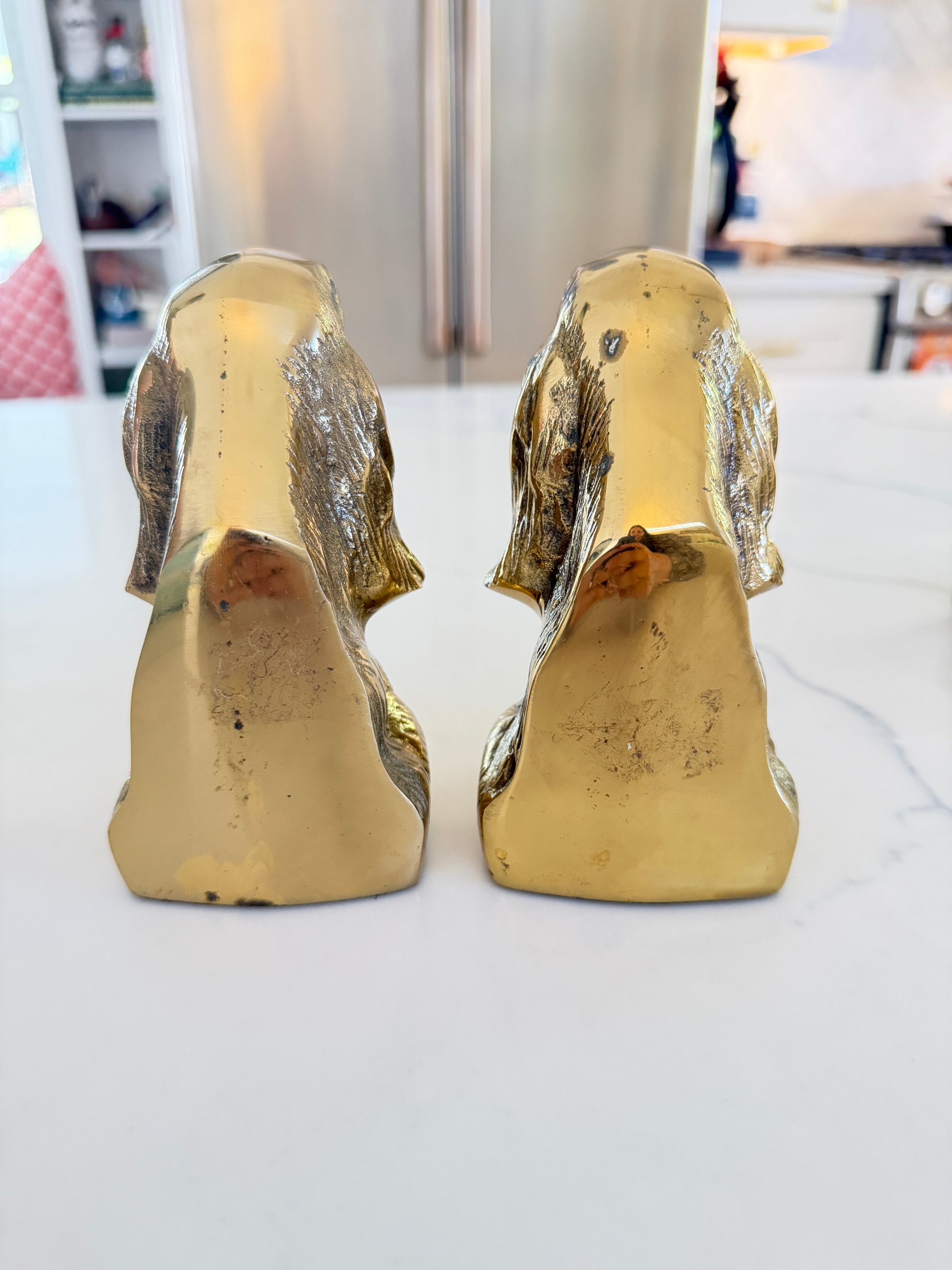 Vintage Brass Dog Head Bookends — Setter or Spaniel Pair